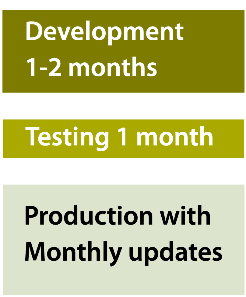 We’ll charge you $2,000 per month to develop your system. It should only take 2-6 weeks to get ready. We need to work with your team and your content to make sure the process is yours.