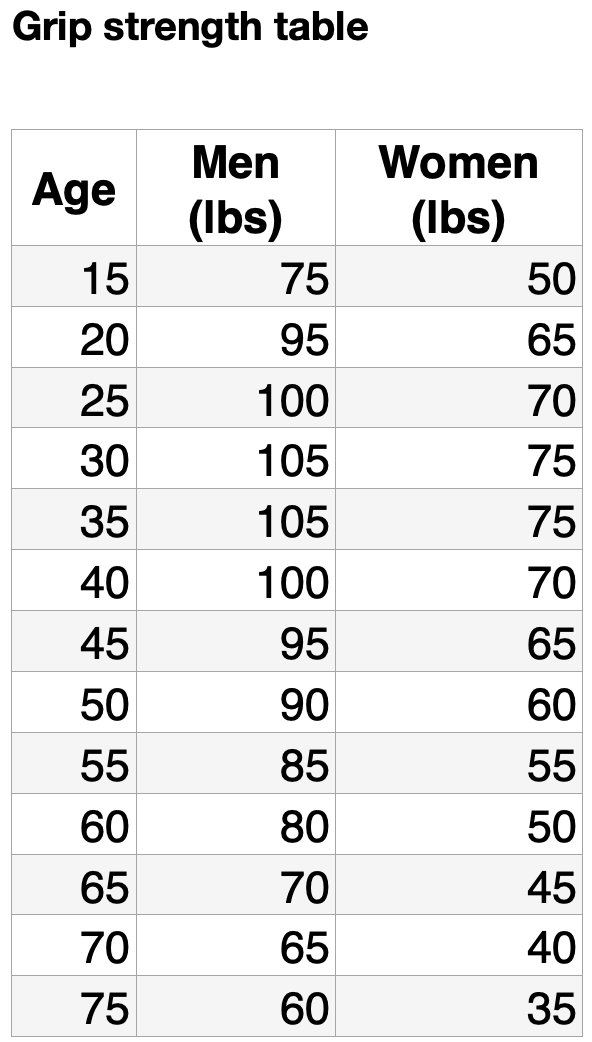 Those who have read Peter Attia’s book Outlive know that grip strength, along with VO2 max is one of the best indicators of how long you will live. You can measure your grip strength using a cheap dynamometer: